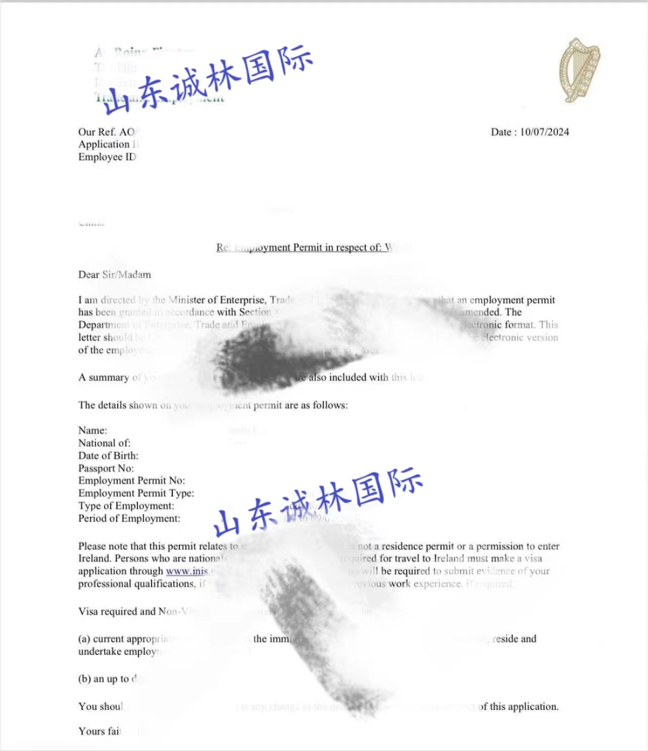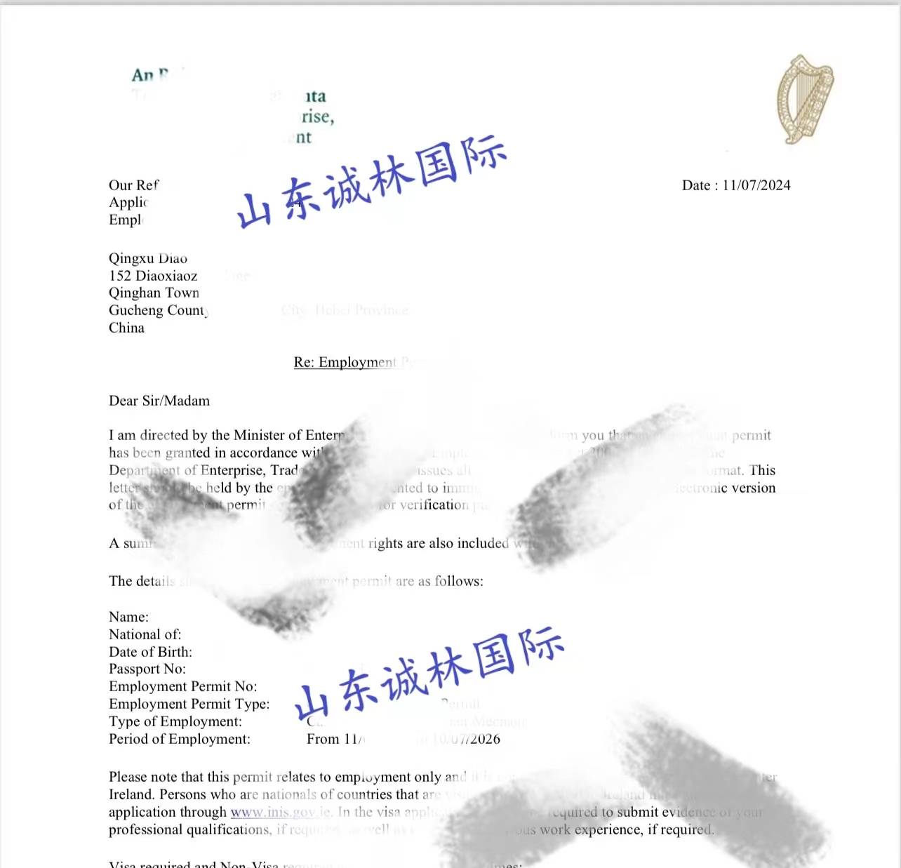 恭喜山东诚林国际爱尔兰喷漆工顺利下签!